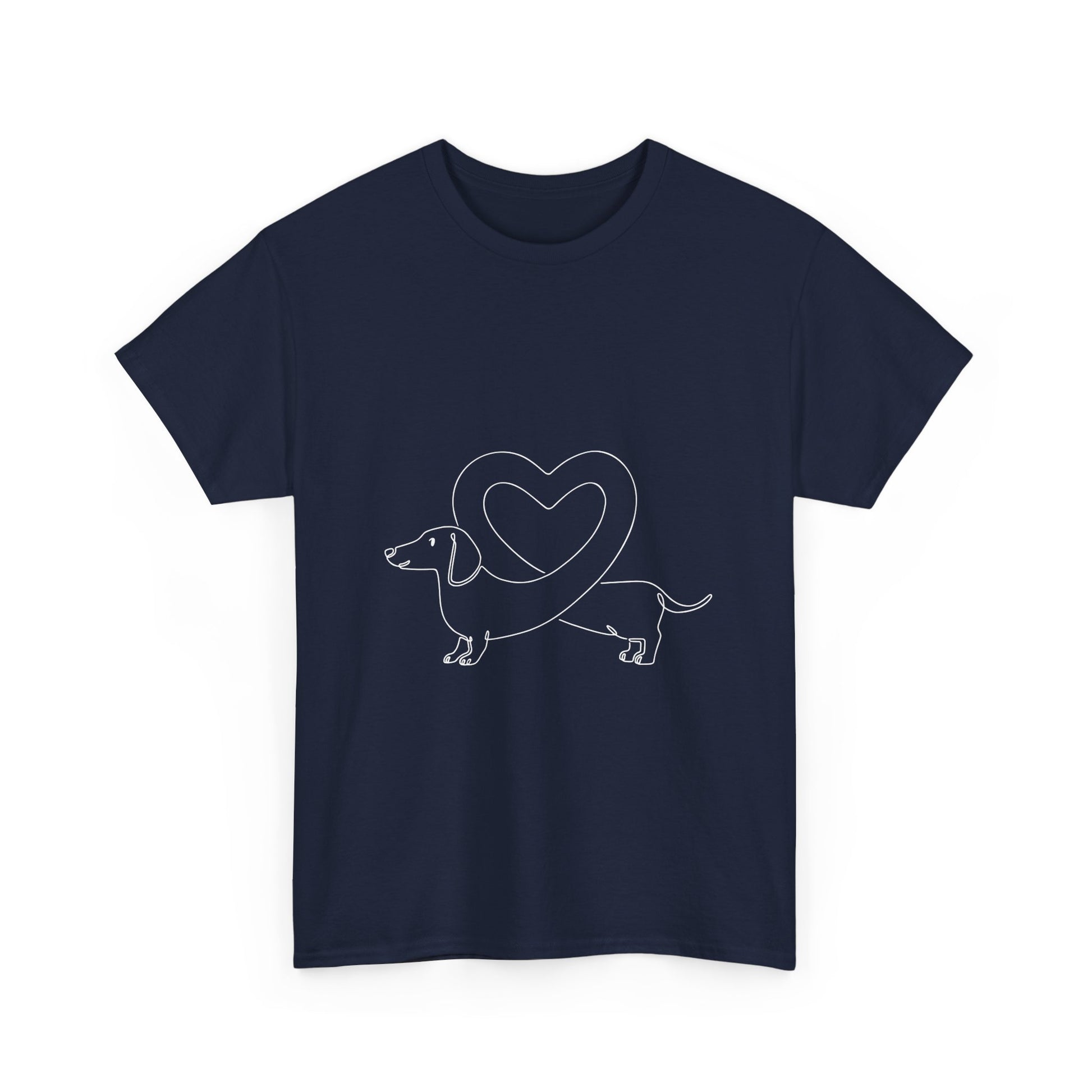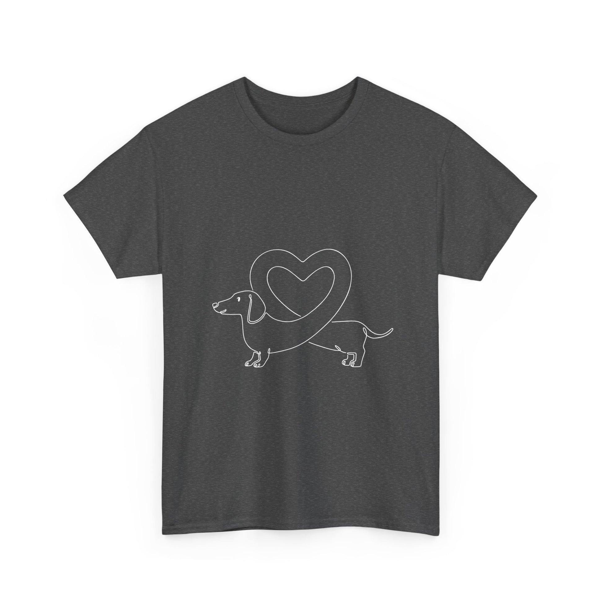 Embrace comfort and style with this unisex heavy cotton tee. This classic fit shirt offers a relaxed wear, making it perfect for casual outings or semi-formal gatherings. Its timeless crew neckline adds a neat touch, while the durable, smooth fabric ensures that it feels great against your skin. The unique design, featuring a charming outline of a dachshund within a heart, exudes love and warmth, making it an ideal choice for dog lovers and animal enthusiasts. Whether you’re celebrating a birthday, enjoying a casual day out, or indulging in a cozy evening at home, this tee fits seamlessly into your life. It's perfect for any occasion, from lazy weekends to festive gatherings. Gift it to friends or family members who cherish their pets, or wear it yourself to showcase your love for furry companions!