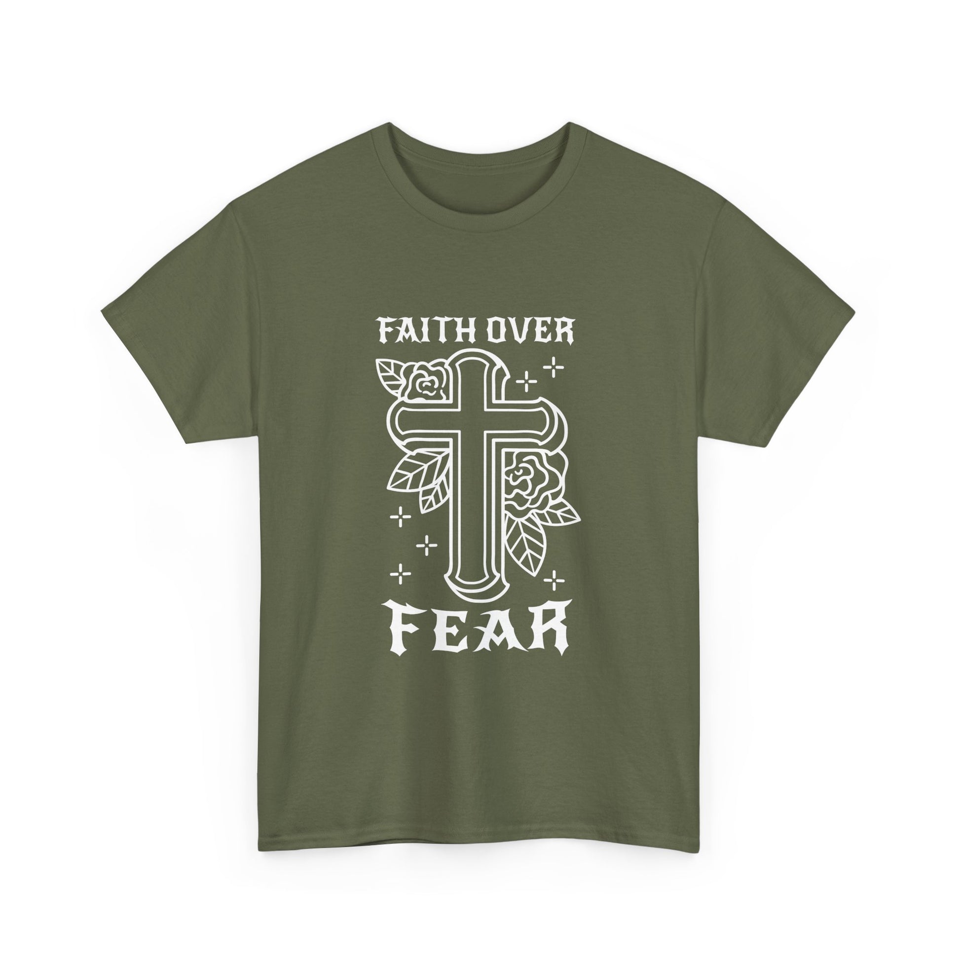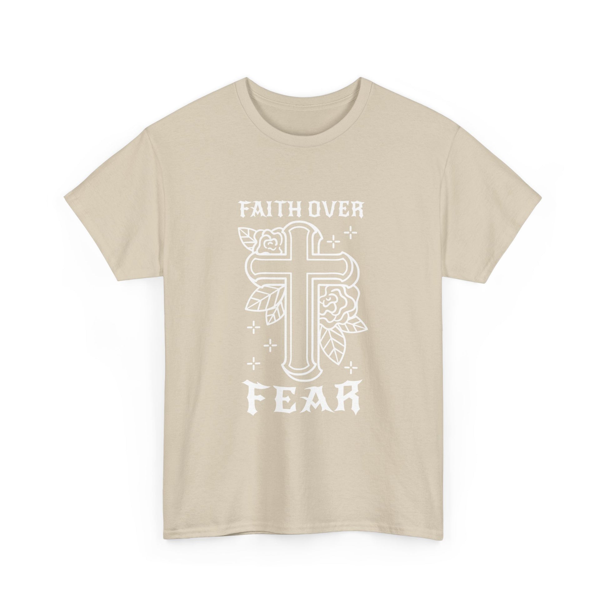 Experience comfort and style with this unisex heavy cotton tee, perfect for expressing your beliefs and values. Featuring a bold design that encourages a positive mindset, this shirt is ideal for daily wear, gatherings, or casual outings. Its relaxed fit and timeless crew neckline make it suitable for everyone who values comfort without sacrificing style. Celebrate your faith and spread positivity on special occasions like Easter, Christmas, or any moment that calls for a reminder to embrace courage over fear. This tee is a fantastic gift for friends, family, or anyone who cherishes messages of hope and resilience.