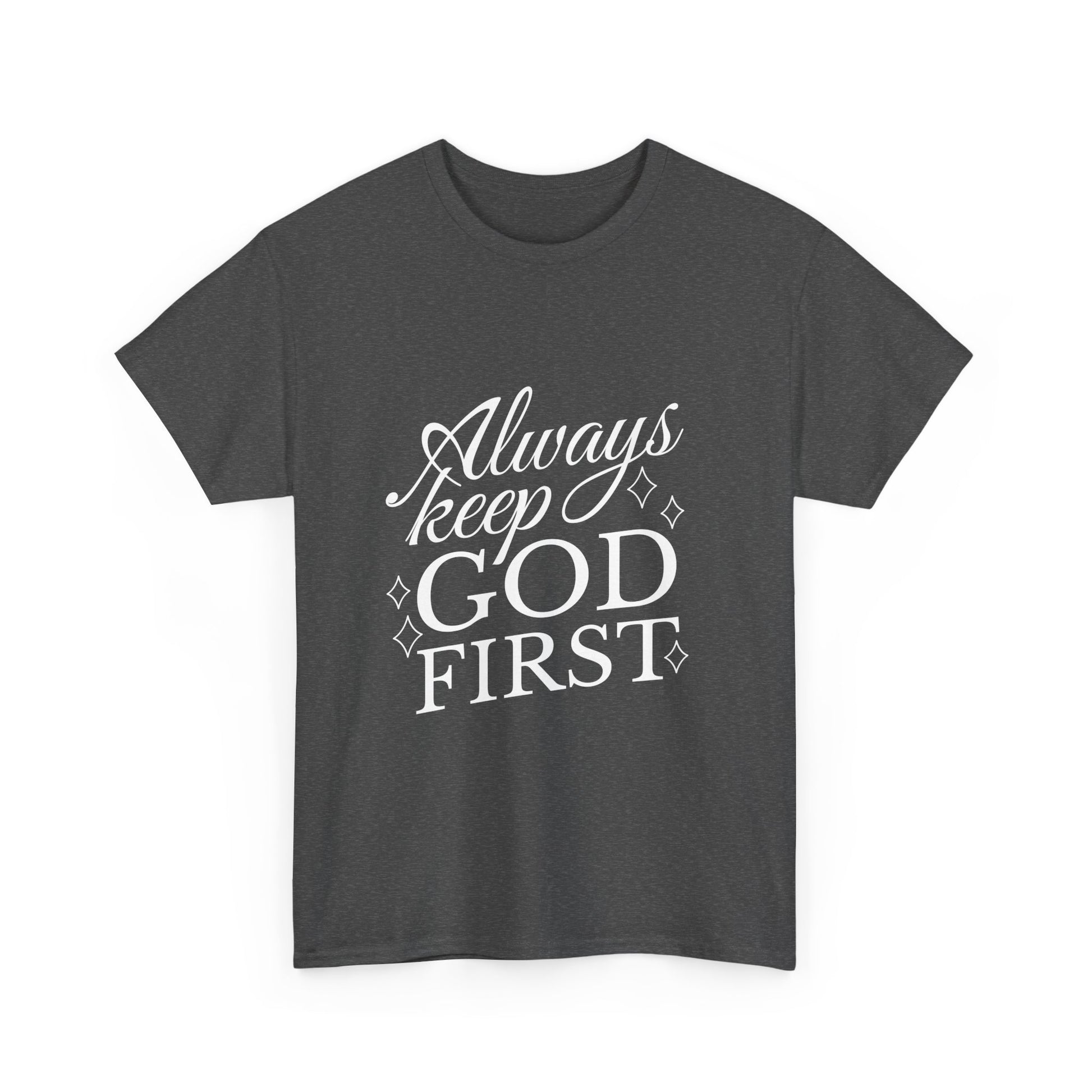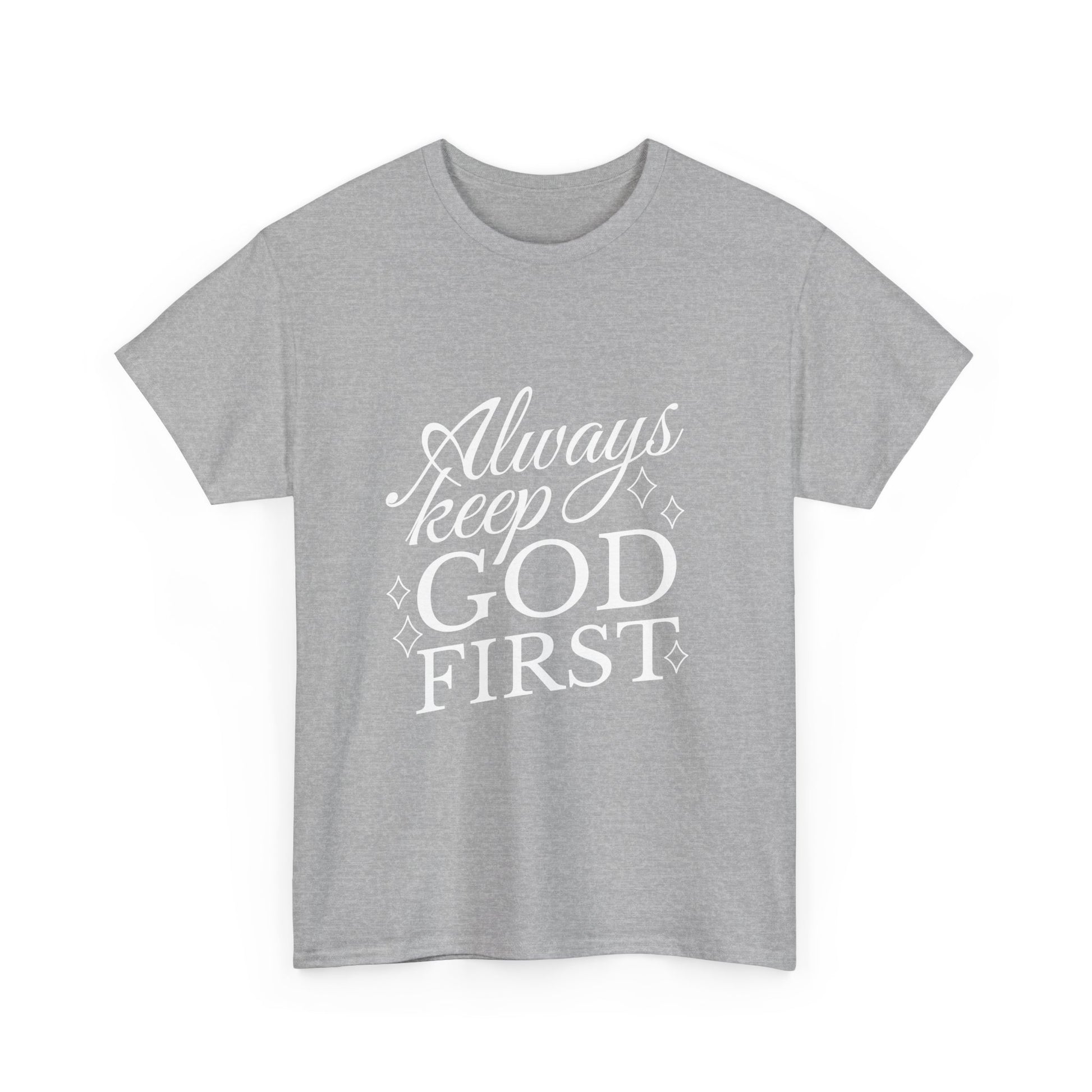 Embrace faith and style with this Unisex Heavy Cotton Tee, perfect for those who prioritize their beliefs in everyday life. This comfortable and versatile tee is designed to fit seamlessly into your wardrobe, ensuring you can express your values wherever you go. Ideal for casual outings, church services, or relaxed gatherings, it exudes a vibe of confidence and peace. Whether you're dressing for a holiday celebration, community event, or simply a day out, this shirt makes a heartfelt statement. It's a great gift for friends and family who cherish their faith, making it perfect for occasions like Christmas, Easter, or birthdays.