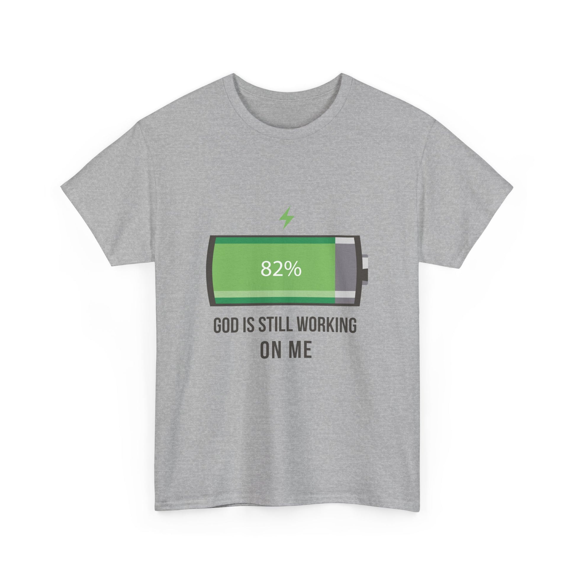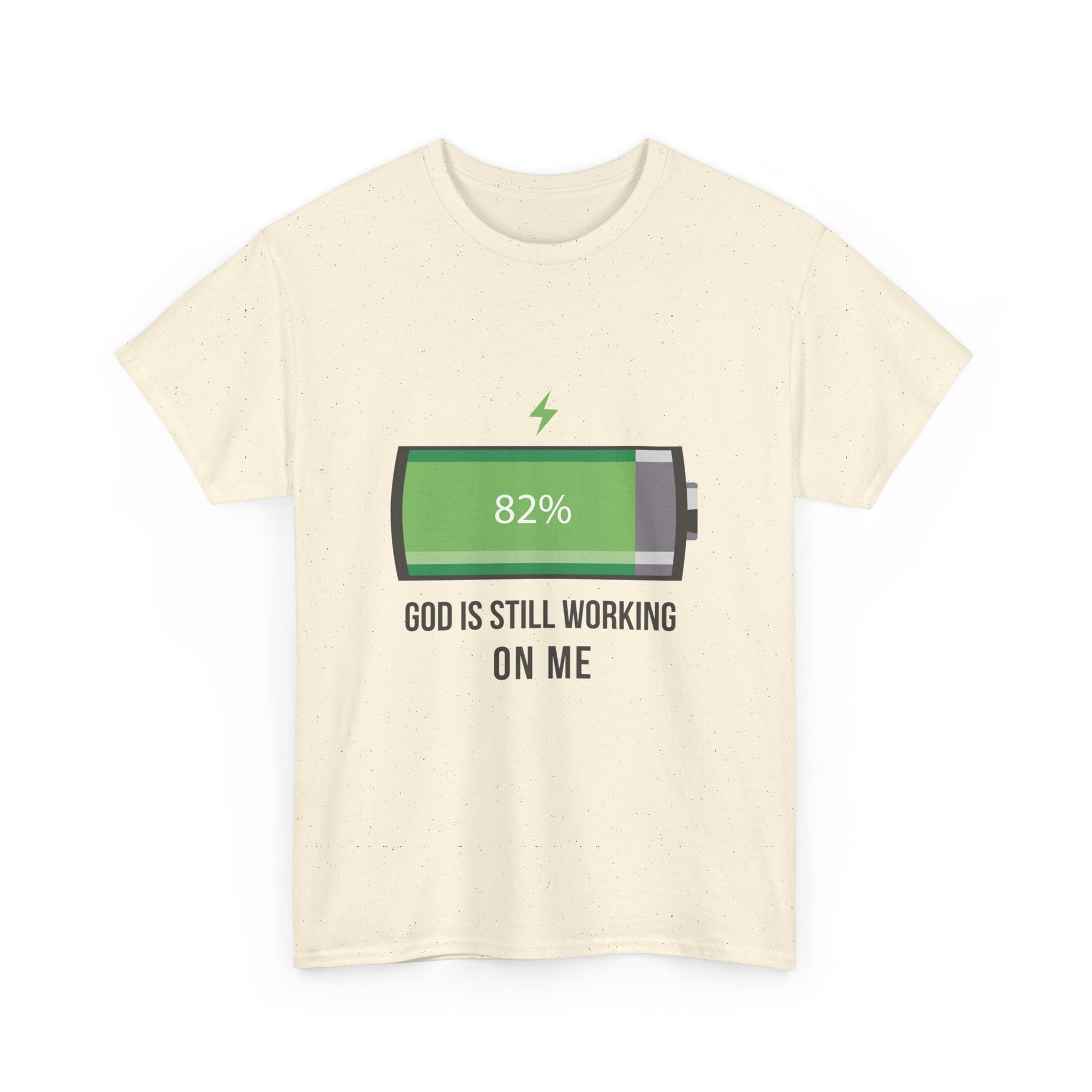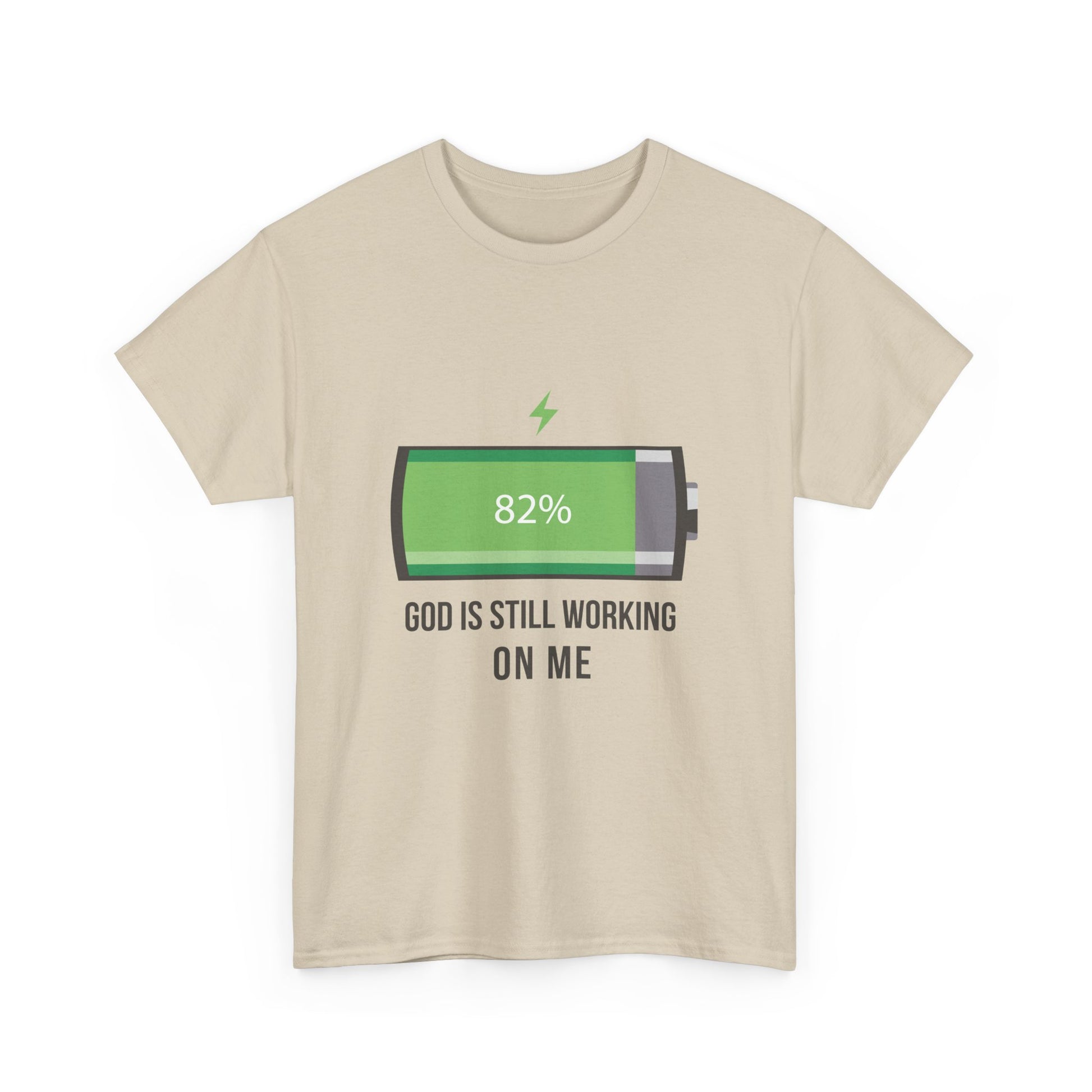 Elevate your wardrobe with this stylish Unisex Heavy Cotton Tee, designed for comfort and casual flair. Its unique design features a battery graphic with the uplifting message, 'God is still working on me,' making it a perfect addition for those seeking a light-hearted perspective on life's journey. Ideal for everyday wear, this tee can effortlessly transition from relaxing days at home to casual outings with friends. Whether you're celebrating personal growth, attending family gatherings, or just enjoying a laid-back day, this t-shirt resonates with individuals who appreciate humor and motivation in their daily attire. Perfect for birthdays, holidays, or just a thoughtful gift for loved ones. Embrace a vibe of positivity and comfort wherever you go!