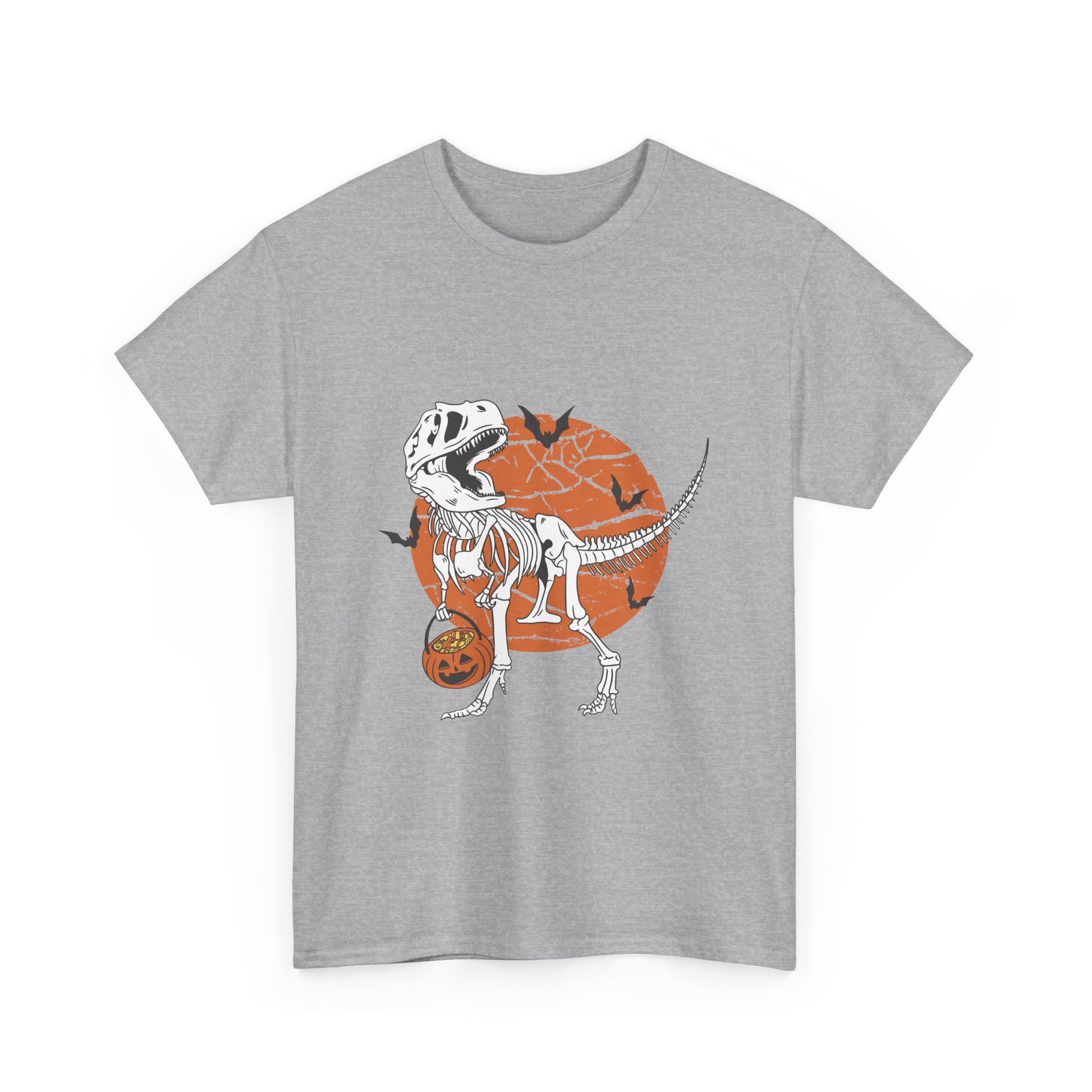 Introducing a versatile Unisex Heavy Cotton Tee that brings a touch of fun and playful spirit to your wardrobe. This t-shirt features a charming dinosaur skeleton design set against a vibrant orange backdrop, perfect for adding a whimsical vibe to any casual outfit. It's ideal for those who appreciate unique graphic tees and want to express their personality through their style. Whether you're gearing up for Halloween festivities, weekend hangouts, or simply enjoying a relaxed day, this tee fits seamlessly into your life. A fantastic gift for dinosaur enthusiasts, casual dressers, or anyone looking to make a statement while staying comfortable and stylish!