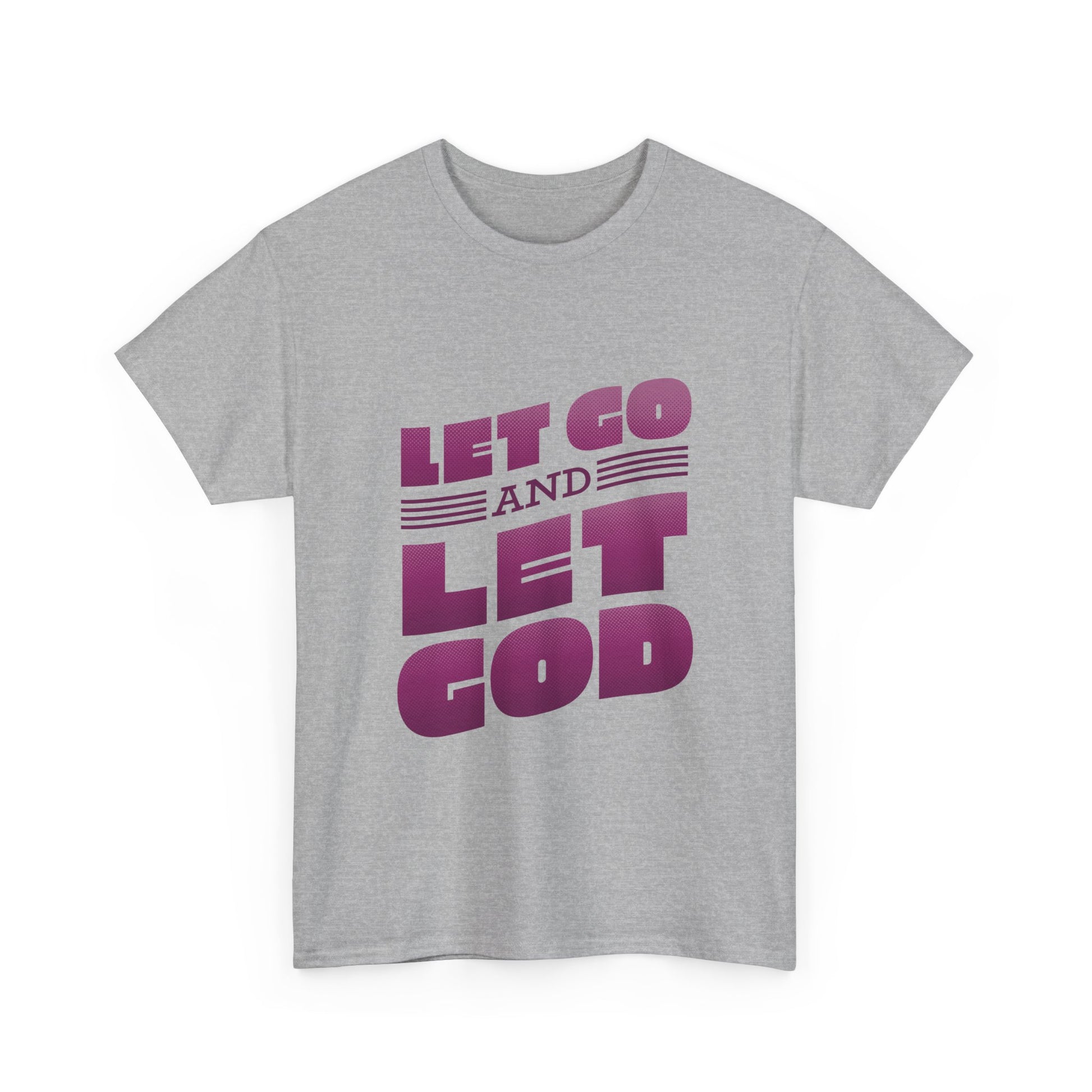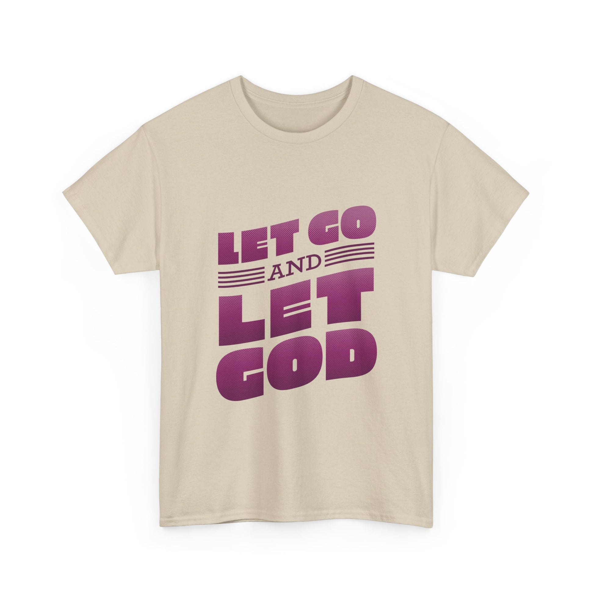 Introducing our Unisex Heavy Cotton Tee, a versatile essential for any wardrobe. This tee radiates a relaxed, uplifting vibe, perfect for anyone seeking comfort while spreading positivity. Ideal for casual outings, spiritual gatherings, or simply lounging at home. Its clean design and motivational message, 'Let Go and Let God,' make it a thoughtful gift for friends and family during holidays, spiritual observances, or celebrations of self-care. Suitable for adults, this tee embraces sustainability with its ethically sourced materials, making it an ideal choice for the conscious consumer.