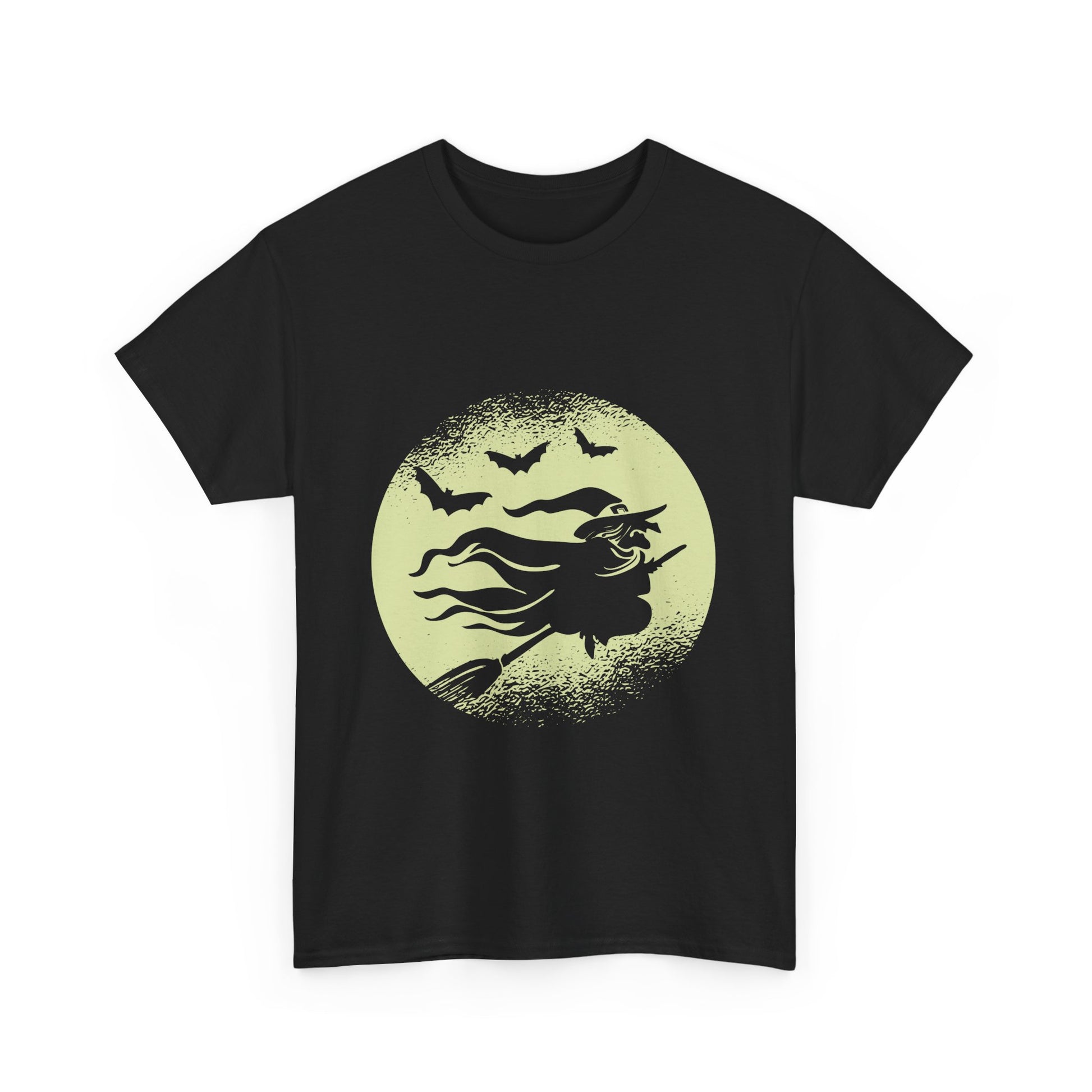This unisex heavy cotton tee embodies a whimsical charm, perfect for those who embrace a playful spirit. The design features a striking witch flying against a full moon, creating a haunting yet stylish aesthetic suitable for Halloween festivities or casual outings. Ideal for anyone looking to express their love for the mystical and magical, this tee can easily become a staple in your wardrobe. It's versatile enough for daily wear, costume parties, or themed events. Whether you’re attending a Halloween celebration or just embracing the season’s vibes, this shirt wrap you in comfort and creativity.